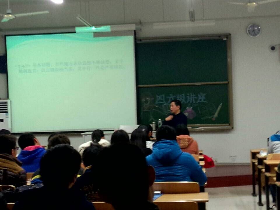 2014年12月5日晚18:30,由水利水电院学生会学习部主办、滕卫东老师主讲的四六级讲座在博学楼B座208如期举行。