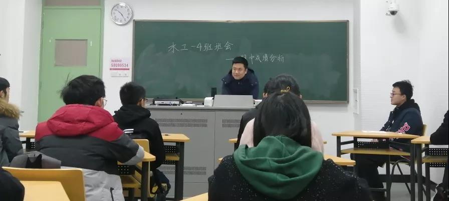 前不久,永利3044noc集团官网2019级本科生进行了进入河海大学后的第一次期中考试,为了进一步帮助同学们发现自身学习状态的问题,及时调整解决,同时给成绩不甚理想的同学敲响警钟,敦促同学们端正学习态度,明白学习对于自身发展和未来的重要性,2019级水工四班举办了以“期中成绩分析”为主题的班会。