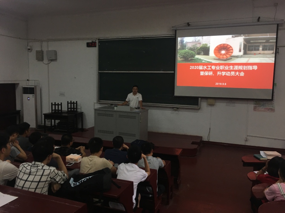 9月6日,我院2020届水工专业职业生涯规划指导暨保研、升学动员大会顺利举行。副院长张继勋、副书记戴玉珍、教学秘书蒋慧敏、16级辅导员笪步源及2020届全体本科生参加会议。