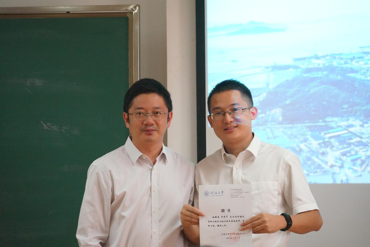 学生处副处长、就业指导中心主任赵海伟向蒋建平老师颁发了“河海大学职业规划与就业指导咨询老师”的聘书,充分肯定了蒋老师对我校毕业生就业工作的指导意义。
