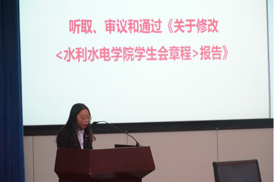 大会听取、审议和通过《关于修改<水利水电学生会章程>报告》《第二十四次学生代表大会学生提案征集报告》。