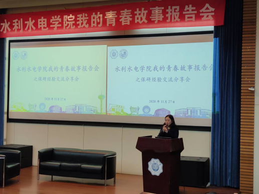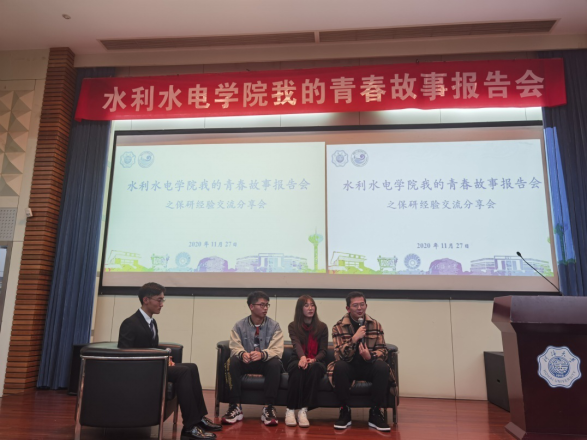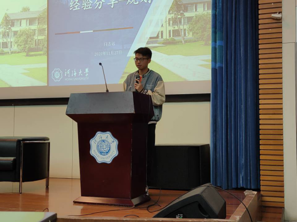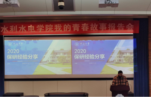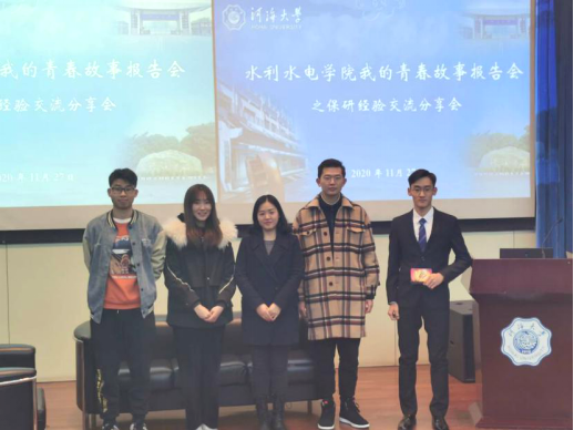 2017级水工专业王涛,目前已成功保研至清华大学直博。在分享会上王涛同学讲述了自己的学习体会和经历,着重分享了大学三年的心得以及有关保研的内容,包括专业成绩考核、能力考核、竞赛、科研等,让同学们对保研有了一个初步印象。