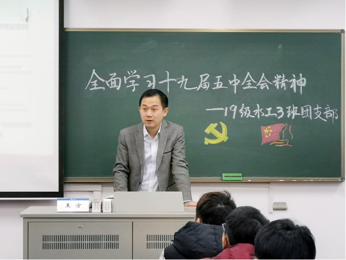 12月7日,永利3044noc集团官网2019级水工三班开展“深入学习党的十九届五中全会精神”专题学习会,党委副书记王方、2019级辅导员帅雨婷和水工三班全体同学参与会议,团支书闵恒主持会议。