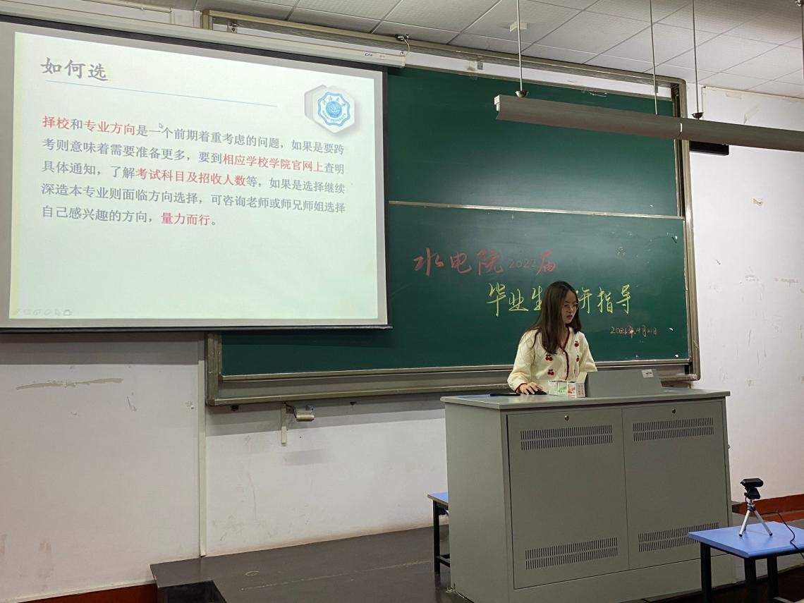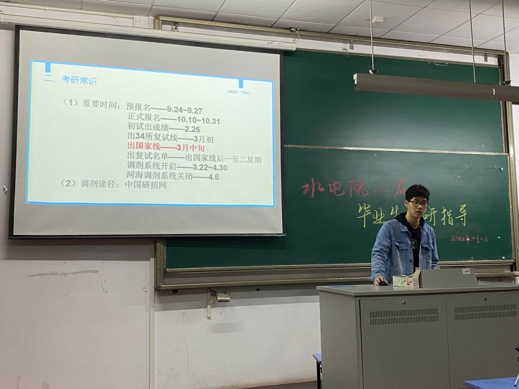 4月21日晚,永利3044noc集团官网召开水电院2022届毕业生考研指导会,会议由水电院2018级本科生辅导员姜帆老师主持,2017级本科生刘雪娇、李新、温家宣和张树立分享,水电院2018级全体本科生参会,学生家长在线上会议同步参与。