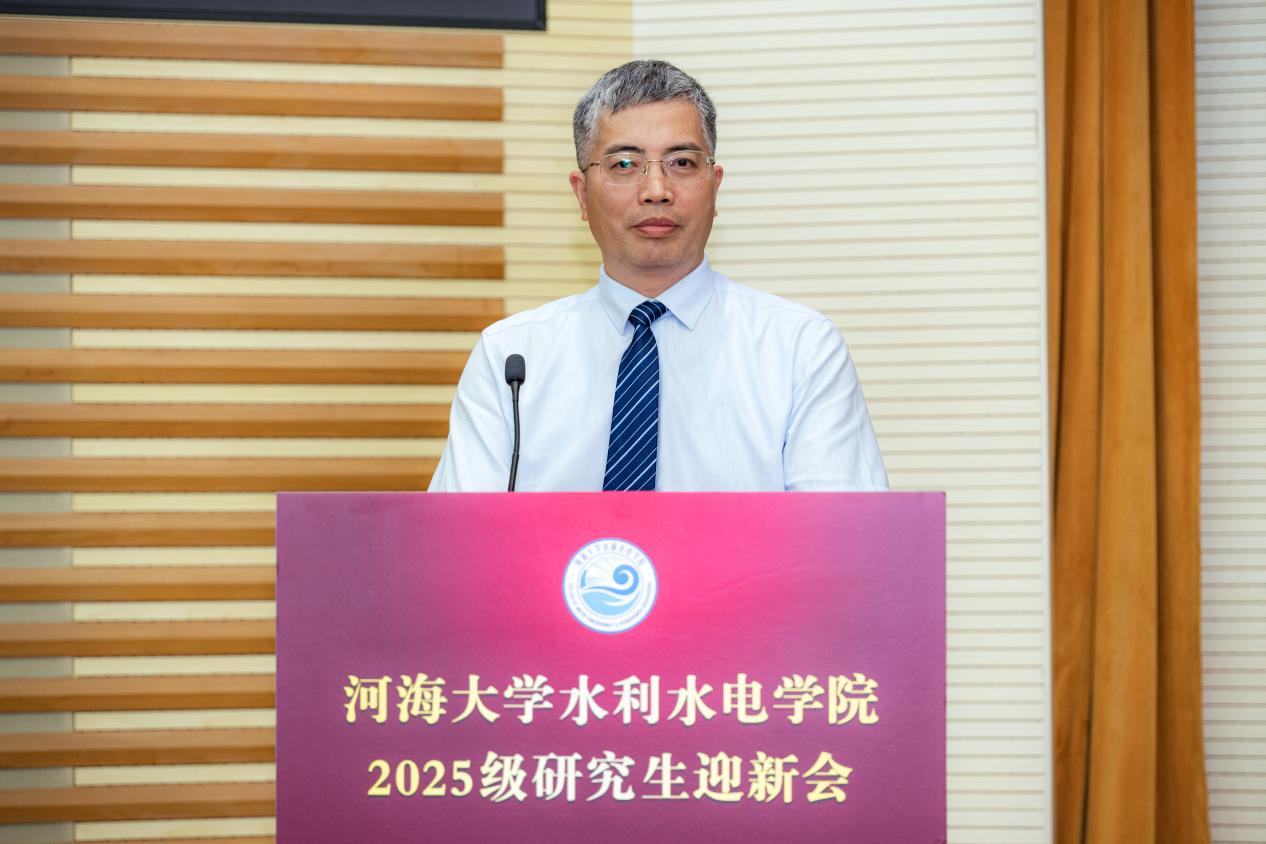 王媛院长代表学院全体师生员工,向2025级新同学的到来致以热烈的欢迎和诚挚的祝贺。她结合学院的历史沿革、学科发展以及师资力量,详细介绍了永利3044noc集团官网在办学成就与科研实力方面的突出成果。她提到,研究生阶段是攀登科学高峰的新起点,也是奠定学术根基、孕育创新成果的黄金时期。她指出,同学们一要永葆赤子之心,做江河安澜的守护人。凝聚智慧、勇于担当,在水电院磨砺成敢闯敢干的弄潮儿,将个人理想融入强国复兴的江河伟业。二要秉持求知之念,做滴水穿石的实干家。以解决真问题、创造真价值为目标,让勤奋成为青春最厚重的底色,让扎实的专业能力成为未来搏击风浪的底气。三要敢闯未知之境,做现代水利的开拓者。敢于跳出思维定式、勇于探索未知领域,真正把创新成果写在祖国江河湖海之间,为发展水利事业新质生产力、推动高质量发展注入青春力量。