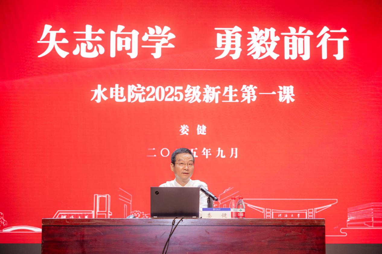 娄书记以轻松交流的方式,结合自己的求学、工作经历,向全体新生讲述河海大学的历史传承和水电人的使命担当,引导新生适应崭新的大学生活。娄书记对新生提出三点殷切要求:一是坚守初心,志存高远。水利事业以服务国计民生为核心价值,需要将个人理想融入国家水利发展大局,勇担时代赋予的行业重任。二是勤奋学习,精益求精。永利3044noc集团官网学生要深耕基础学科和专业知识,主动投身实验、实习与科研实践,以“钉钉子”精神实现理论与实操的深度融合,锤炼过硬专业素养。三是团结协作,全面发展。立足水利工程系统性特点,在团队协作中补位共进,依托学校学院平台提升综合能力,成长为兼具实干精神与创新活力的高素质水利人才。