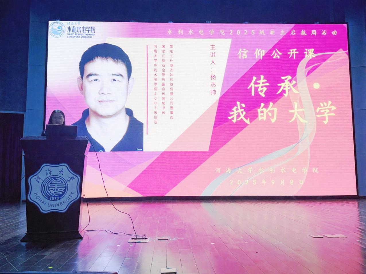此次“传承·我的大学”信仰公开课活动,不仅为2025级新生搭建了与行业前辈对话的桥梁,让同学们真切感受到水利人的责任与担当,更以优秀校友的奋斗实例为新生树立了可学可做的榜样。活动既丰富了新生启航周的内容,也进一步凝聚了校友力量,为学院人才培养与行业发展衔接注入了新动力,对培养新生努力成为推动我国水利事业蓬勃发展的中坚力量具有重要意义。(文/潘欣晨、欧阳陈博、任超,图/刘江天)