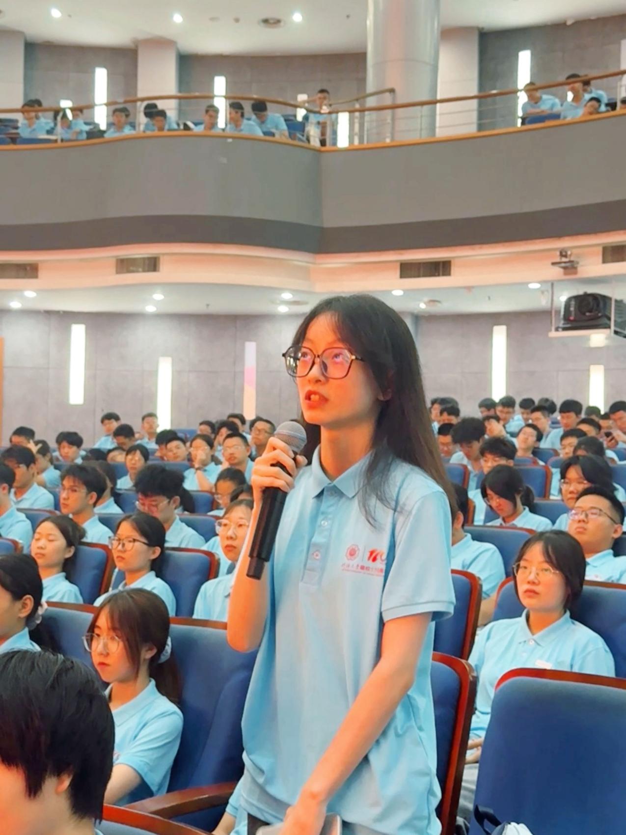 在提问环节,2025级新生围绕水利行业意义价值、新时代发展趋势及海外发展等话题向杨志帅学长请教,杨志帅校友结合自身经验逐一耐心解答,现场交流氛围浓厚。会后很多同学表示,杨志帅校友的耐心指导与殷切期望,让新生们深受鼓舞,更加坚定了投身水利事业的决心与信心。