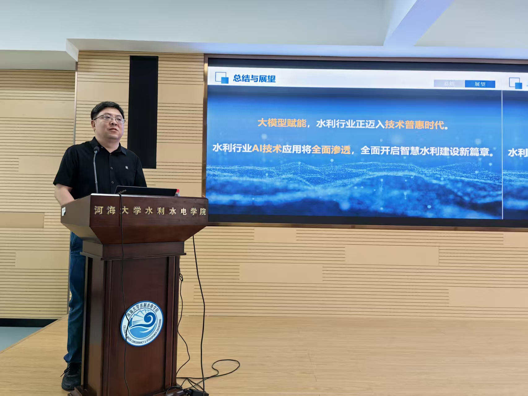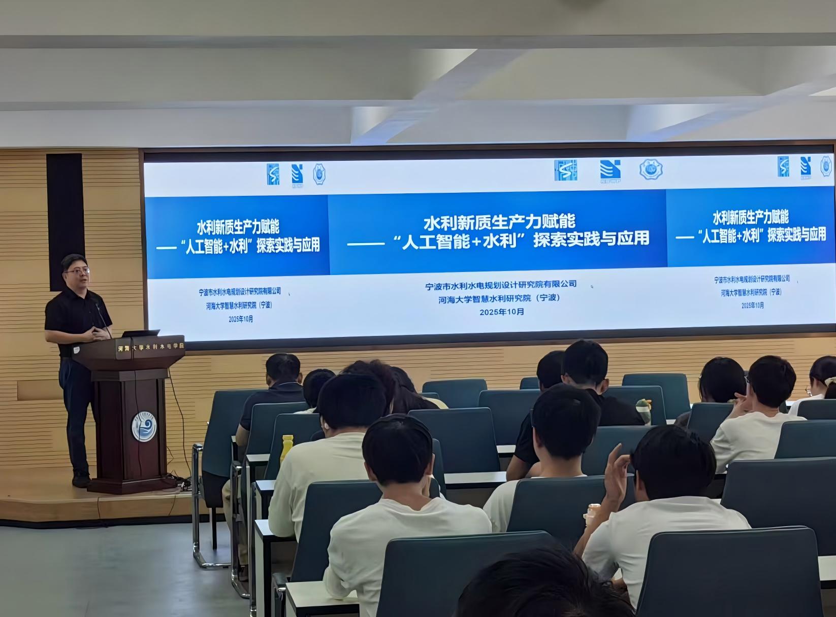 为推动水利领域创新发展,拓展学生专业视野,探索人工智能与水利的深度融合路径,10月9日,永利3044noc集团官网邀请宁波市水利水电规划设计研究院有限公司智慧水利研究院院长、河海大学兼职硕士生导师顾巍巍高级工程师做题为“水利新质生产力赋能——‘人工智能+水利’探索实践与应用”的专题报告,吸引了众多同学到场交流学习。报告由河海大学永利3044noc集团官网智慧水利系系主任许栋教授主持,副院长俞晓东教授、本科生辅导员陈辰出席了本次报告。