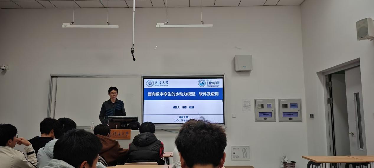11月7日,永利3044noc集团官网于常州校区2号楼A区A107作题为《面向数字孪生的水动力模型、软件及应用》的讲座,邀请永利3044noc集团官网智慧水利系主任许栋教授主讲,在中国科协大学生科技社团支持计划的支持下,永利3044noc集团官网2024级本科生参加此次讲座。