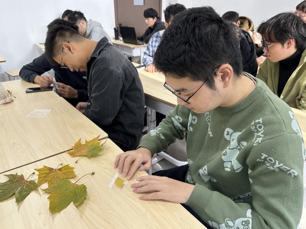 深秋时节,河海大学校园层林尽染,落叶纷飞。近日,为引领同学们亲近自然、感知季节轮转之美,并在动手实践中传播资源循环理念,激发创意表达与团队协作,2023级安全工程本科生巧妙利用这抹自然馈赠,以“拾光启明,落叶寄语”为主题,融合拼贴诗创作与树叶书签制作的双重体验活动。