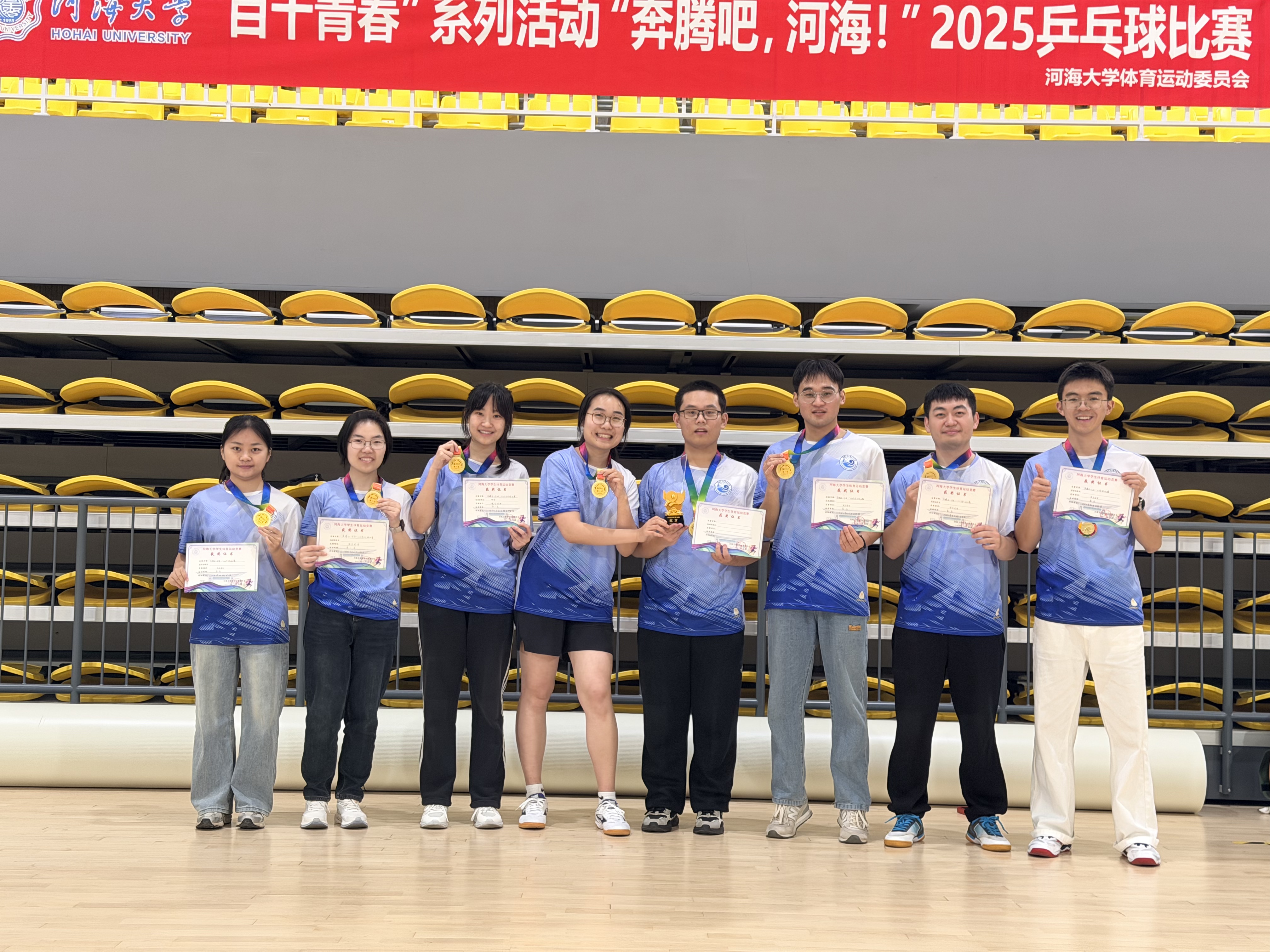 12月20日,“奔腾吧,河海!”2025年乒乓球比赛在常州校区体育馆火热开展。赛前通过院内选拔,永利3044noc集团官网本科生郭轩毓、研究生赵旭、张姚、王岩博、邢容、戴诗菡、李奕函、彭小倩作为队员参赛,经过一天的激烈竞争,永利3044noc集团官网乒乓球队员们斗志昂扬,一路披荆斩棘,成功卫冕夺冠。