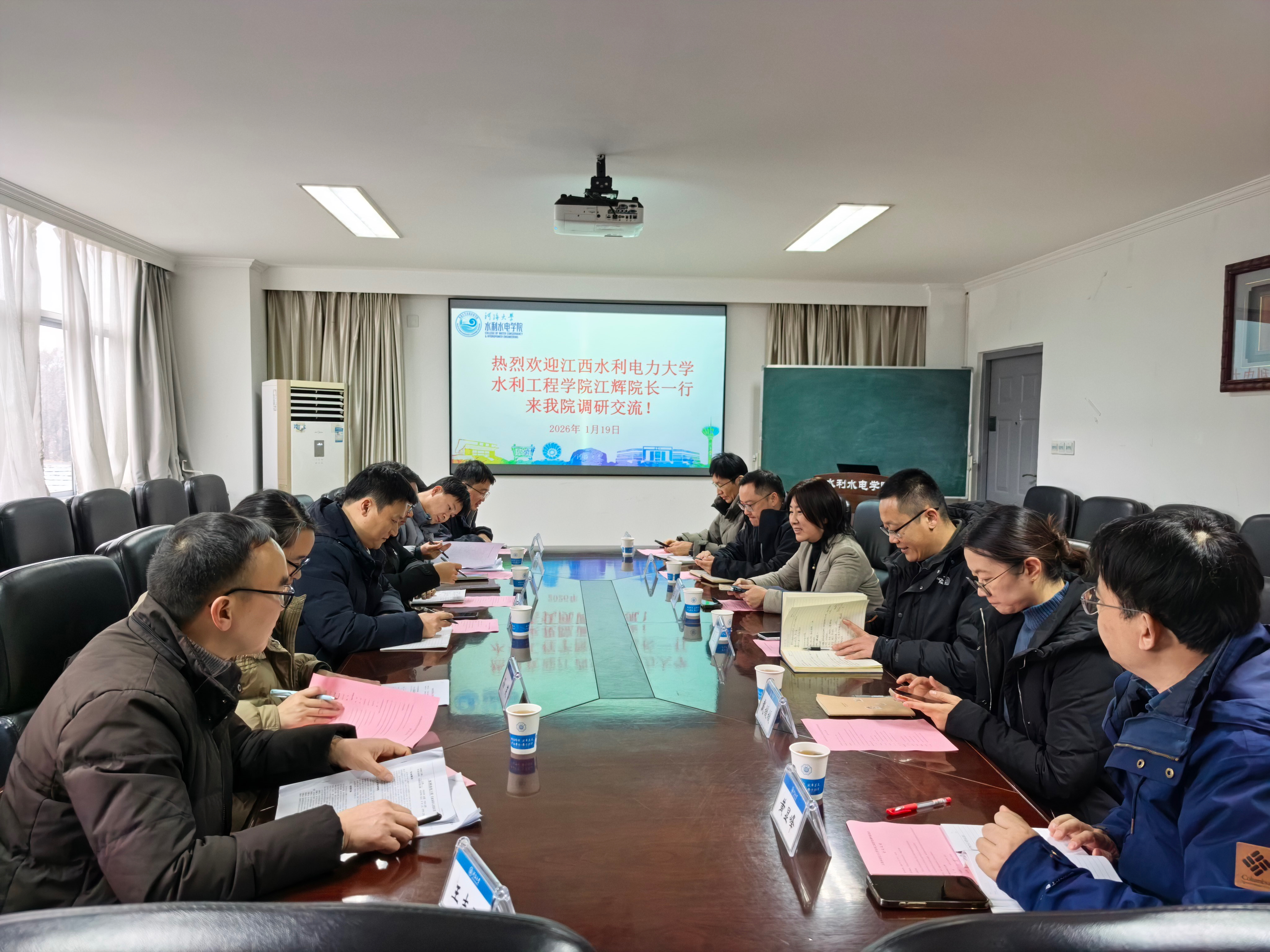 1月19日下午,江西水利电力大学水利工程学院院长江辉一行赴河海大学永利3044noc集团官网,围绕学科建设与人才培养开展调研座谈。河海大学永利3044noc集团官网院长王媛、副院长赵兰浩、俞晓东、副书记戴媛媛、专业建设办公室主任黄显峰、智慧水利系主任许栋参与座谈。