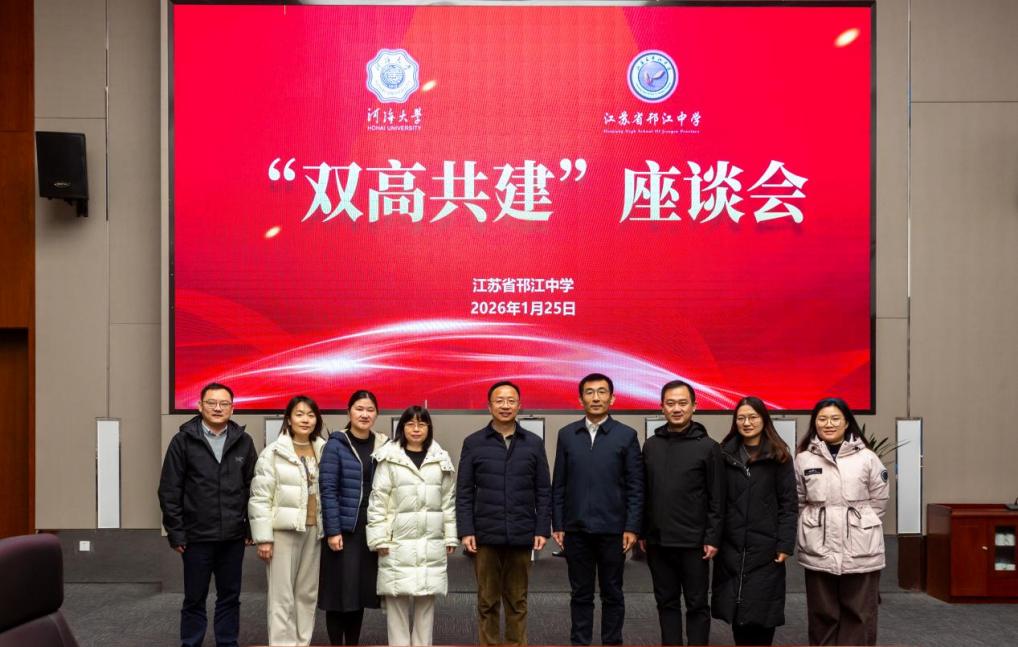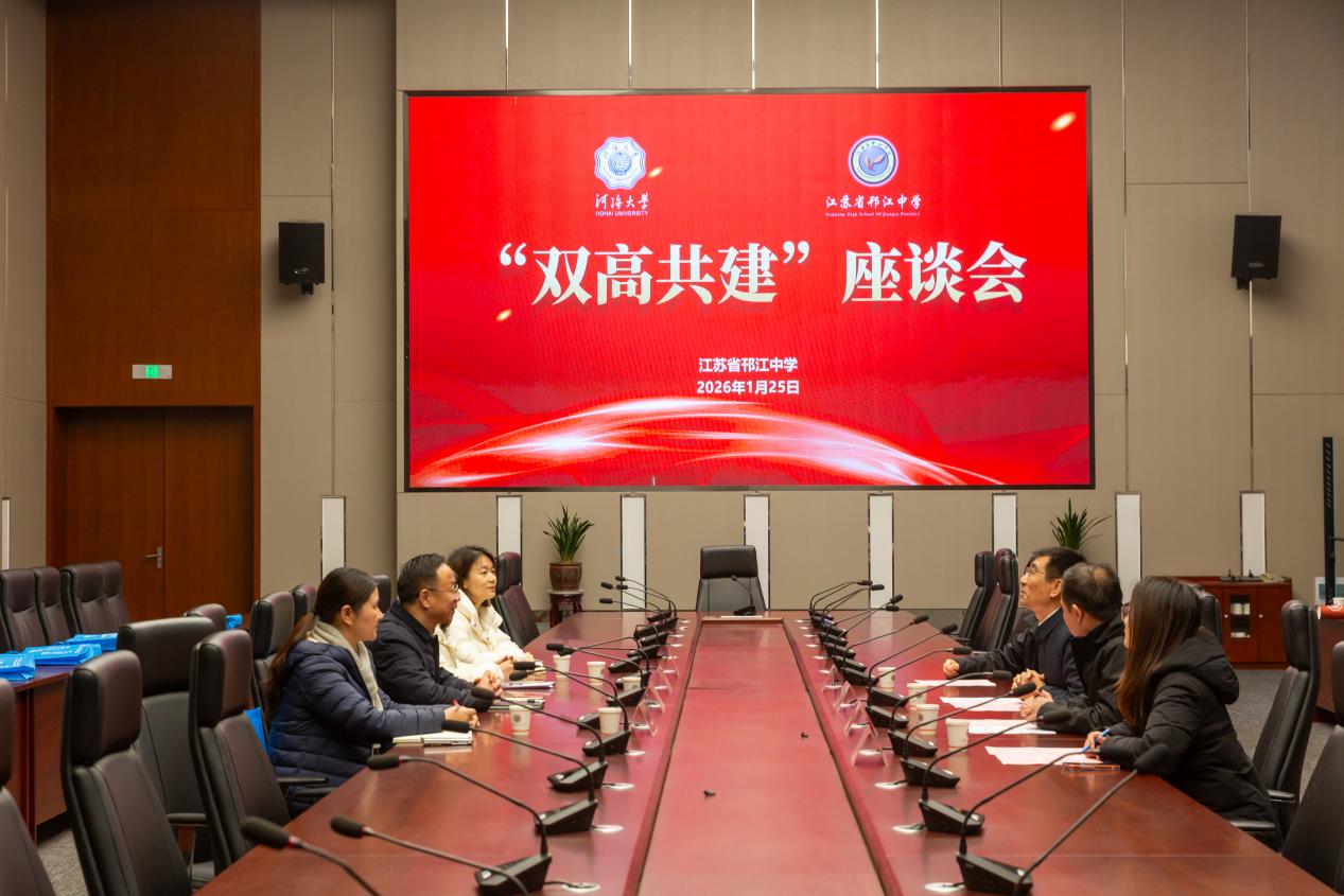 “双高共建”座谈会上,双方围绕优质生源输送、育人资源共享、协同模式创新等深入交流。宋翔洲副校长介绍了河海大学的办学特色、学科优势及人才培养成果。他代表学校向江苏省邗江中学赠送喜报、捐赠“蛟龙号”合金模型,彰显两校在科学精神与文化传承上的深度共鸣。陈军副校长详细介绍了江苏省邗江中学的办学规模及特色、人才培养成果及高三学子升学概况,深切表达了与河海大学深化合作、共促学生成长的殷切期望。