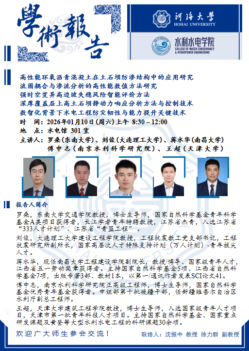 学术报告 | 水工结构工程系列讲座