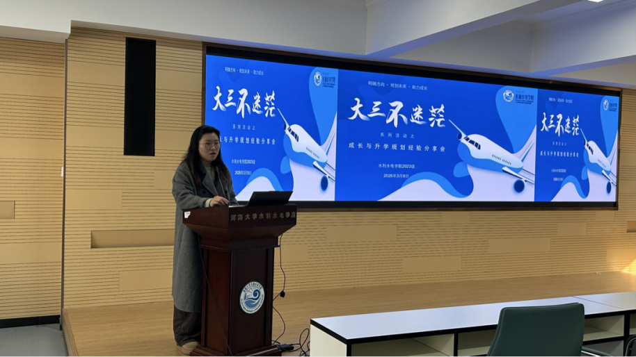 Hu Mingyue, a 2025 graduate student and 2025 undergraduate alumnus, was invited as the guest speaker. The session was hosted by Shuai Yuting, the counselor for the 2023 undergraduate cohort, and was attended by many 2023 undergraduate students of the college.