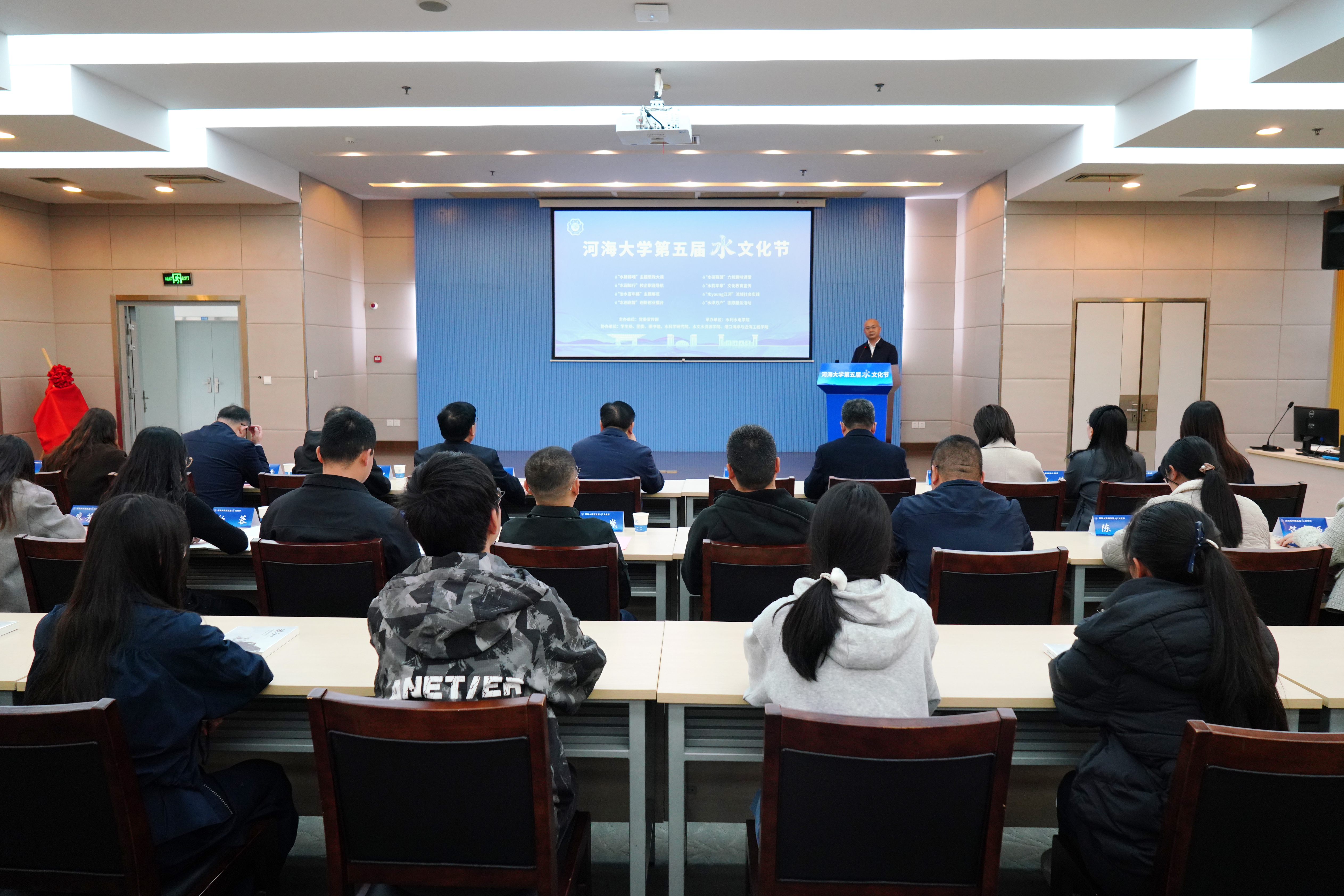 On March 23, the fifth Water Culture Festival of Hohai University was inaugurated. Lu Guobin, Deputy Party Committee Secretary and Vice President of the university, and Li Junting, Deputy Director of the Linhuai Gang Flood Control Engineering Administration in Anhui Province and Senior Engineer, attended the opening ceremony. Wei Youxing, Standing Committee Member of the Party Committee, Director of the Propaganda Department, and Director of the Civilization Office, presided over the event.